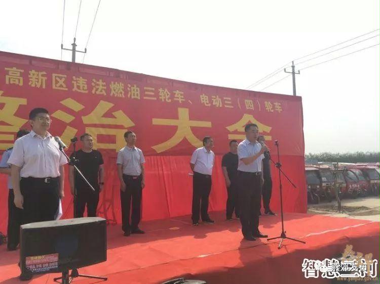 燕郊高新區黨工委副書記、管委會副主任梁寶杰宣布違法燃油三輪車、電動三(四)輪車集中銷毀開始。