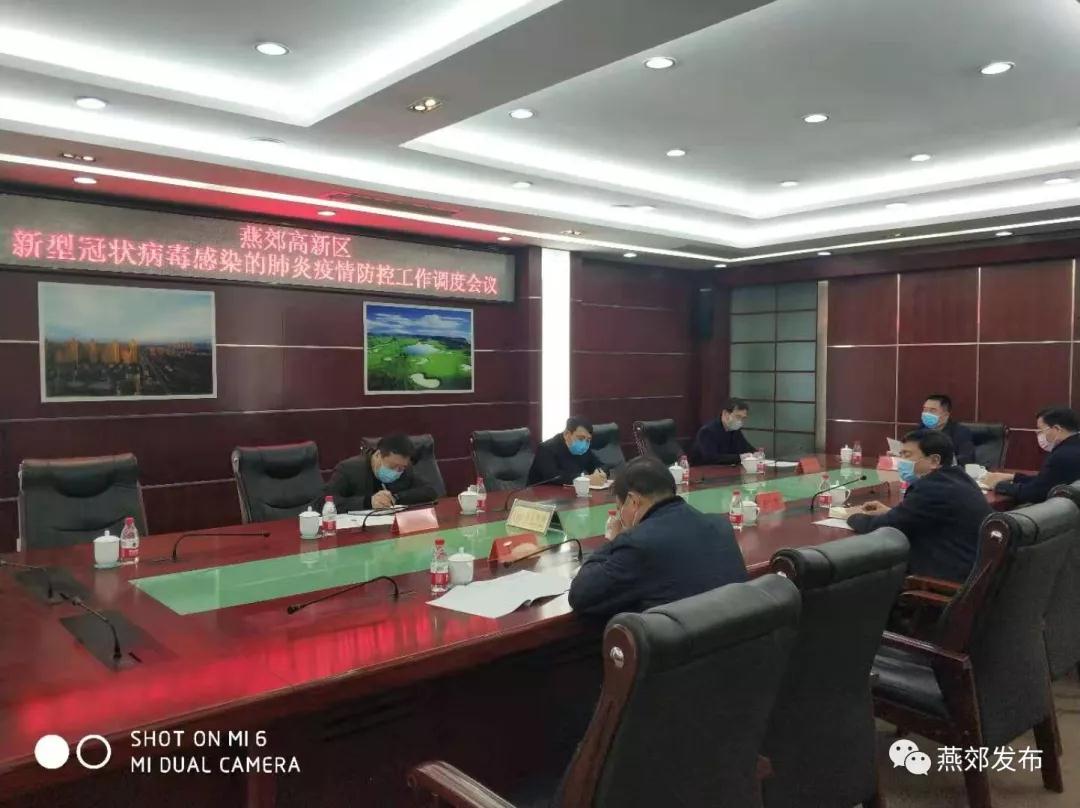 2月2日下午5:00,燕郊高新區召開新型冠狀病毒感染的肺炎疫情防控工作調度會,聽取各防控職能組排查情況和督導檢查組檢查情況的匯報,研究部署下一步工作,高新區黨工委、管委領導班子成員,各部門主要負責人參加會議。