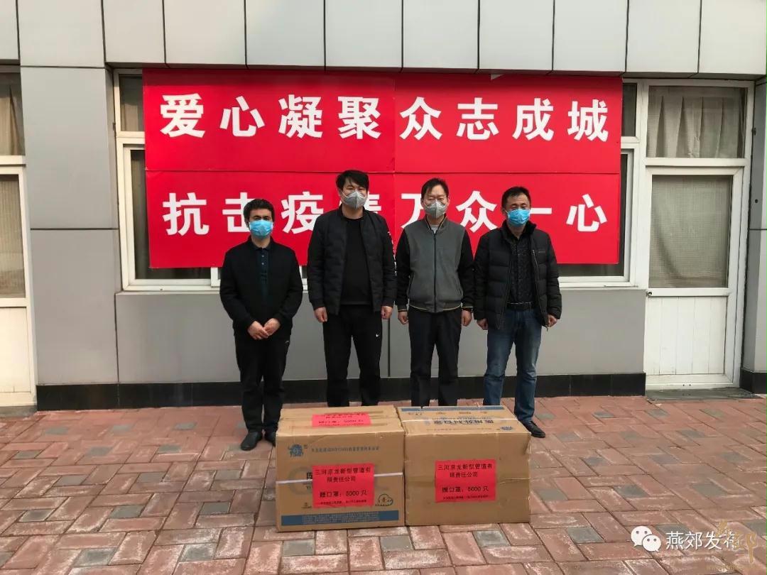 3月6日,三河京龍新型管道有限責任公司向燕郊高新區管委會捐贈口罩5000只,助力疫情防控阻擊戰。