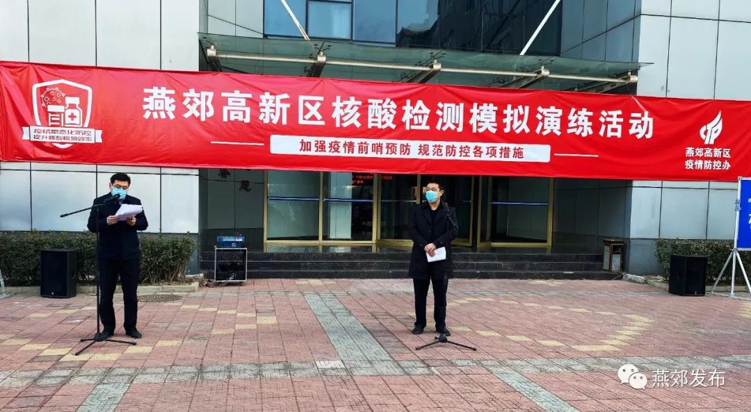 為積極應(yīng)對(duì)秋冬季可能新出現(xiàn)的新型冠狀病毒感染肺炎疫情,在出現(xiàn)確診病例和劃定為“中高風(fēng)險(xiǎn)”地區(qū)后,能夠?qū)崿F(xiàn)5-7天內(nèi)完成轄區(qū)內(nèi)全員核酸檢測(cè)工作,12月11日上午,燕郊高新區(qū)在晶龍工業(yè)園舉行了全員核酸篩查檢測(cè)應(yīng)急演練。燕郊高新區(qū)黨工委副書(shū)記許勝永,疫情防控辦主任,燕郊高新區(qū)41名網(wǎng)格組組長(zhǎng),燕郊人民醫(yī)院和各企業(yè)職工代表共計(jì)200余人參加了演練。