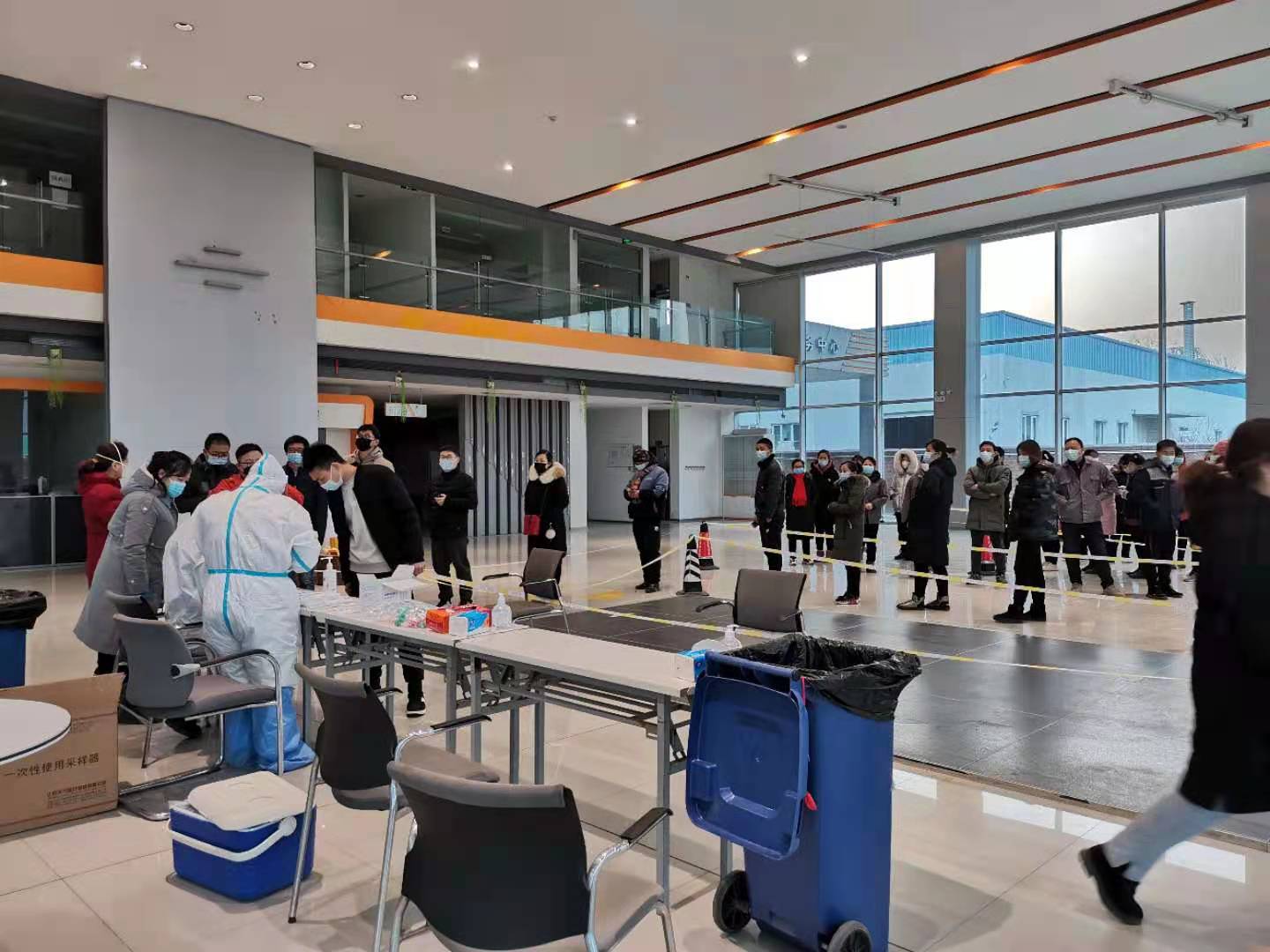 1月12日當天,燕郊高新區就完成了全區766家企業、93個工地等企事業單位的核酸檢測工作。15日,又迅速完成了第二次核酸檢測。區內41個網格組,164名網格組成員全部奔赴一線,從連夜統計人數、分布檢測點、醫務人員對接、人員配備、物資準備到現場的秩序維護、消殺處置,各項工作周密細致,做到應檢盡檢,不漏一人,確保各處生產生活的人員及環境健康安全。