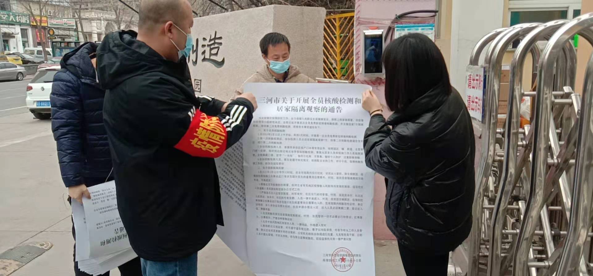 面對冬季新的疫情防控形勢,41個網格排查組集結精兵強將,迅速對區內企業開展多途徑、地毯式排查,每日下沉到企業,督導企業嚴格落實疫情防控“十個有”,做好門禁管理,嚴格執行進出人員登記、體溫檢測和核酸檢測陰性證明、健康碼、行程碼綠碼通行制度;做好消殺工作,企業辦公區域、車間、食堂、電梯等公共區域,每日要做好消毒工作,加強通風,減少人員聚集;做好體溫檢測,做好企業員工每日體溫檢測。在全面排查的同時,網格員還深入企業開展疫情防控宣傳工作,張貼疫情防控通知、公告、公開信、防控須知等各類材料20000余份。