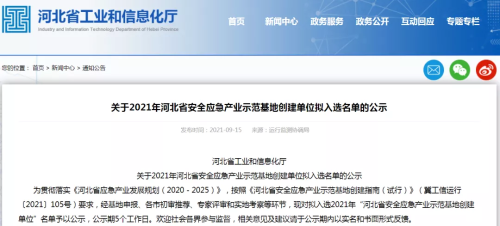 安全應(yīng)急產(chǎn)業(yè)示范基地創(chuàng)建單位公示名單