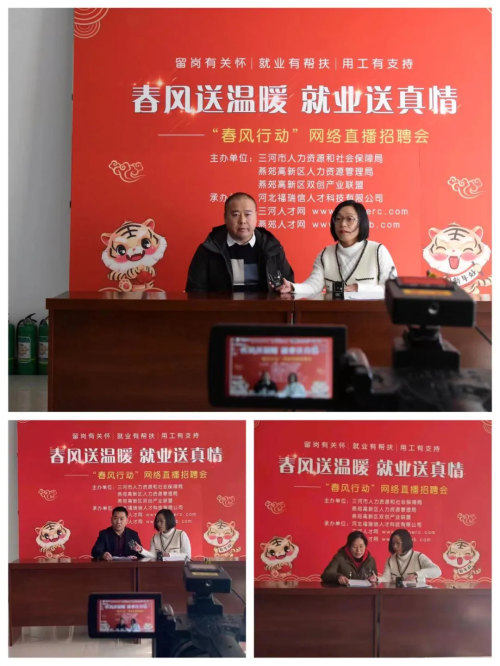 2月16日上午,燕郊高新區(qū)人力資源管理局聯(lián)合三河市人力資源和社會(huì)保障局、燕郊高新區(qū)雙創(chuàng)產(chǎn)業(yè)聯(lián)盟在燕郊高新區(qū)人力資源產(chǎn)業(yè)園成功舉辦“春風(fēng)送溫暖、就業(yè)有真情”、“春風(fēng)行動(dòng)”網(wǎng)絡(luò)直播招聘會(huì)。