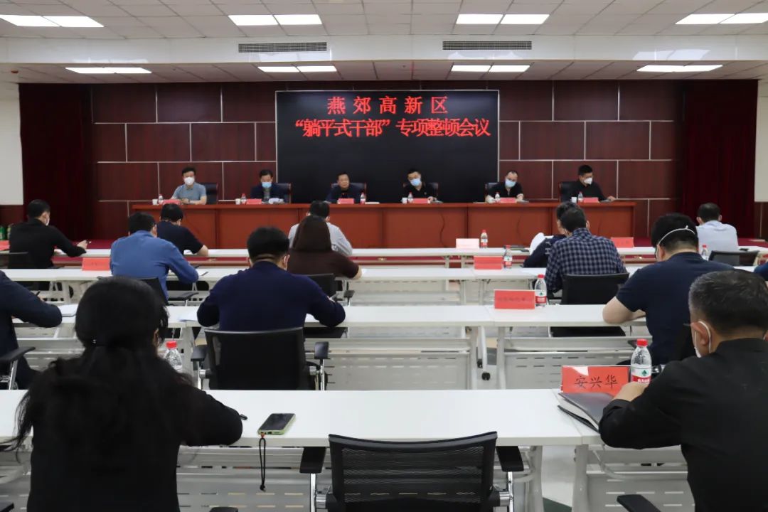 4月23日下午,燕郊高新區召開“躺平式干部”專項整頓會議,貫徹落實三河市相關會議精神,安排部署高新區專項整頓工作,高新區領導班子成員、督察專員及各部門正、副職參加會議。
