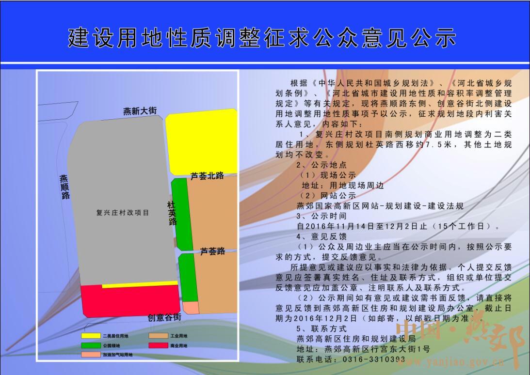 建設用地性質(zhì)調(diào)整征求公眾意見公示(復興莊周邊用地)