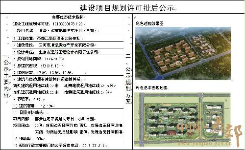 三河市順澤房地產開發有限公司申請的順澤·水榭花城住宅項目(三期)《建設工程規劃許可證》于2017年8月31日核發,現依據河北省住建廳《關于進一步加強城鄉規劃公示公布工作的指導意見》(冀建規【2011】397號),對此項目予以公布。