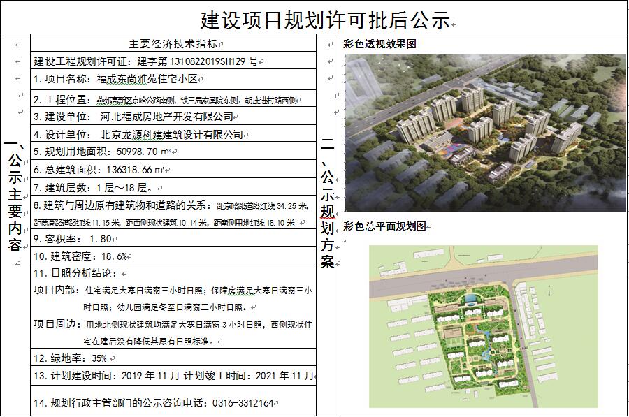 福成東尚雅苑住宅小區(qū)項目規(guī)劃許可批后公示