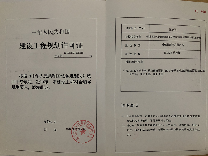 根據河北省城鄉規劃條例 第四十條 建設單位和個人在取得選址意見書一年內未辦理建設項目批準或者核準文件,在取得建設用地規劃許可證一年內未辦理用地批準文件,在取得建設工程規劃許可證、鄉村建設規劃許可證一年內未辦理施工許可證,且未申請延期或者申請延期未獲批準的,原規劃許可自行失效。王會召開發建設的河北永業空氣凈化器科技有限公司年產5000臺智能空氣凈化設備項目《建設工程規劃許可證》(編號:建字第1310822019SH118號)自行失效,現予公示。